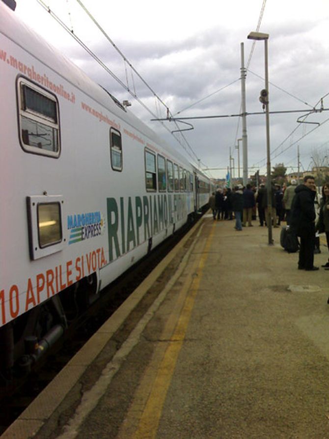 Ore 15 e meno qualche minuto, alla stazione di San Benedetto del Tronto fa tappa il "Margherita Express", il treno-slogan con tutto l'armamentario propagandistico della campagna elettorale della Margherita che presenta una lista comune con i Ds per la Camera dei deputati, sotto il simbolo dell’Ulivo, e una propria lista per il Senato, in vista delle elezioni politiche del 9 e 10 aprile.