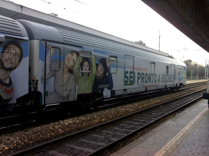 Il treno-manifesto dopo 20 minuti è ripartito verso Ancona, dove sosterà prima di continuare il giro per l’intero stivale.