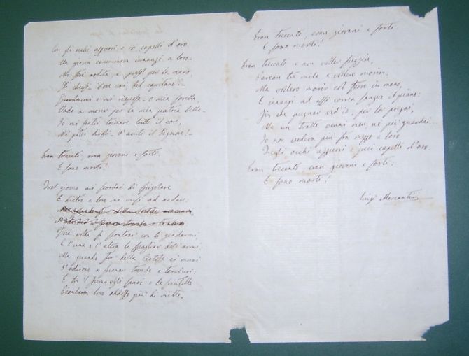 "Il prezioso documento è una poesia patriottica risorgimentale che narra la sfortunata spedizione di Carlo Pisacane nel Regno delle due Sicilie e che fino a qualche hanno fa ha caratterizzato le pagine di tutte le antologie scolastiche - spiega il Prof. Antonio Giannetti - inoltre "La Spigolatrice" non è l'unica poesia nota di questo letterato: ricordiamo, infatti, che Garibaldi, suo grande amico, gli commissionò anche la poesia "Si scopron le tombe, si levano i morti", meglio nota come "L'inno di Garibaldi", musicata poi da Alessio Olivieri e che "l'eroe dei Due Mondi" utilizzò come inno marziale, nel 1858, anni cruciali del processo che portò all'Unità d'Italia".