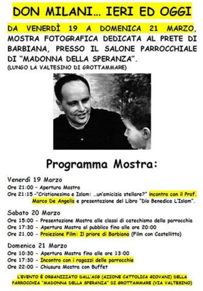 Grottammare | Presso la Chiesa Madonna della Speranza di Grottammare, venerdì 19 marzo 2010, sarà allestita una mostra fotografica dedicata al Don di Barbiana che terminerà domenica 21 marzo.