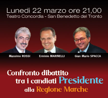 L'incontro, che si svolgerà al teatro Concordia di San Benedetto del Tronto lunedi 22 marzo alle ore 21, prevede un intervento iniziale dei tre candidati sul programma. Successivamente i giornalisti presenti, regolarmente registrati, porgeranno le domande ai candidati.