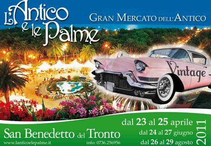 Le edizioni del 2011 confermano la passione del Comune di San Benedetto del Tronto per l'antiquariato, un amore sbocciato in passato e maturato nel corso di decenni che ha visto avvicendarsi i massimi esponenti del settore , collocando l'Antico e le Palme tra le più importanti rassegne d'antiquariato d'Italia con la sua ampia scelta di mobili , oggettistica e complementi d'arredo, quadri, sculture, tappeti , ceramiche, gioielli , libri e stampe antiche.