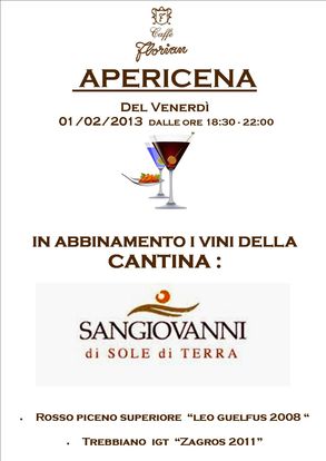 Michele e Massimo si sono avvalsi per l'Apericena di domani 1 febbraio dalle 18,30 alle 22 dei vini della cantina SanGiovanni di Sole di Terra.