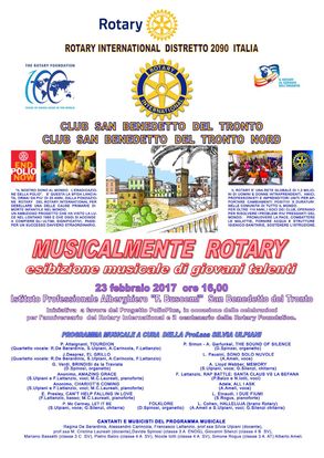 Musicalmente Rotary, è dunque un'iniziativa promossa dal Rotary - Club San Benedetto del Tronto e Club San Benedetto del Tronto Nord - Distretto 2090, in collaborazione con l'istituto professionale sambenedettese, proprio in occasione delle celebrazioni per l'anniversario del Rotary International ed il centenario del Rotary Foundation.