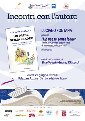 Il Direttore del Corriere della Sera Luciano Fontana presenterà il suo libro "Un paese senza leader" venerdì 29 giugno ore 21,30 alla Palazzina Azzurra. Incontro organizzato dall'Associazione Culturale "I Luoghi della Scrittura", dalla Libreria "La Bibliofila" con il patrocinio ed il supporto dell'Amministrazione Comunale. Conversano con l'Autore Gerardo Villanacci e Silvio Venieri.