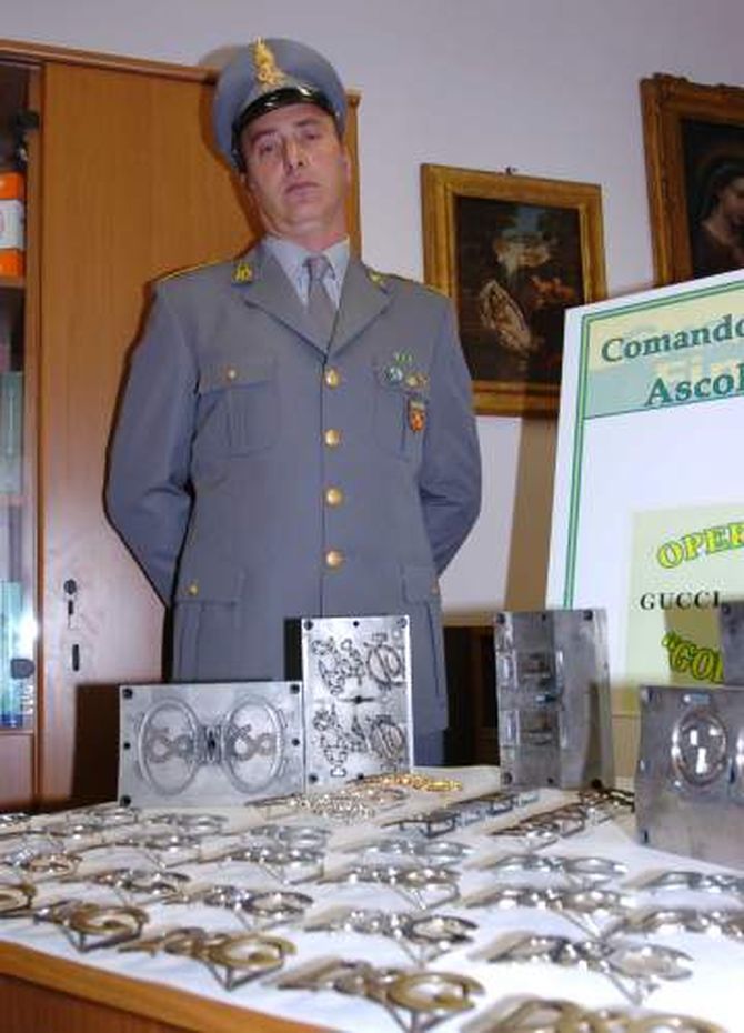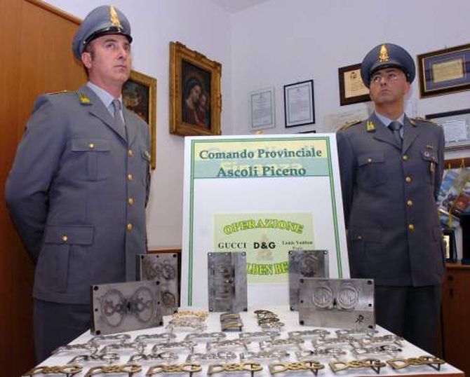 Maxi-sequestro della guardia di finanza di Ascoli: 40.868 fibbie di cinture recanti marchi Dolce & Gabbana, Gucci e Louis Vuitton Paris, oltre a 5 stampi in metallo, sono stati rinvenute in un capannone industriale situato a Castel di Lama.