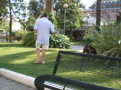 In attesa di un regolamento comunale, che dovrà disciplinare con puntualità tutta la materia che riguarda gli animali domestici (parchi bau, raccolta escrementi, spiagge per cani, ecc) la città ed i turisti subiscono tutto ciò, senza contare che oltre agli animali è capitato di vedere (come documenta la foto) una bimba accompagnata dalla madre sul prato per fare la pipì...ma a questo punto, come si sul dire...la pipì dei bimbi è come quella degli angeli e le palme così riccamente concimate non avranno problemi nel crescere!