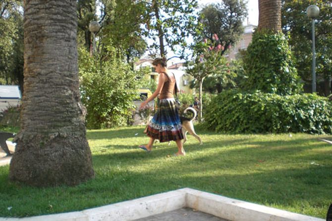 Le foto che vengono riportate in galleria documentano in maniera esauriente questo fenomeno, si vede come i padroni accompagnano con tanto di guinzaglio gli animali attraverso il verde pubblico, soffermandosi...al bisogno!