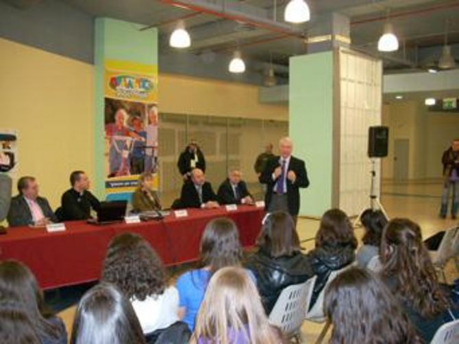 Castel di Lama | Grande successo per lincontro con il coraggioso parroco napoletano svoltosi questa mattina presso il Centro Commerciale Città delle Stelle alla presenza di oltre 250 giovani studenti della provincia.